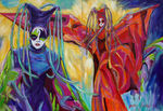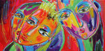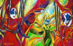 2008Steltlopende vlindervrouwen uit Italie, 3-D doek, om de rand geschilderd