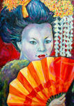 2007diptych betaande uit twee 3D doeken. De Japanse Geisha wacht hunkerend op haar minnaar